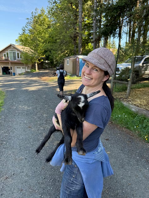 There’s a robust vitality built into working with animals and the land. You can hear your heart speak and get into sync with the knowings of your body. The work is visceral and tactile. Doing farm chores, the aliveness I long for was everywhere. From the goats and chickens and the tiny earth worms I discovered shoveling compost, to the green sprouts of poison oak I had to circumvent walking the trail at the back of the property.